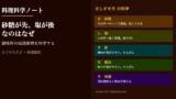 「コクがない」と感じたとき、まずは時間・装・熱のどれかが足りないかを確認しましょう。この3要素を意識するだけで、料理の大幅なレベルアップが可能になります。