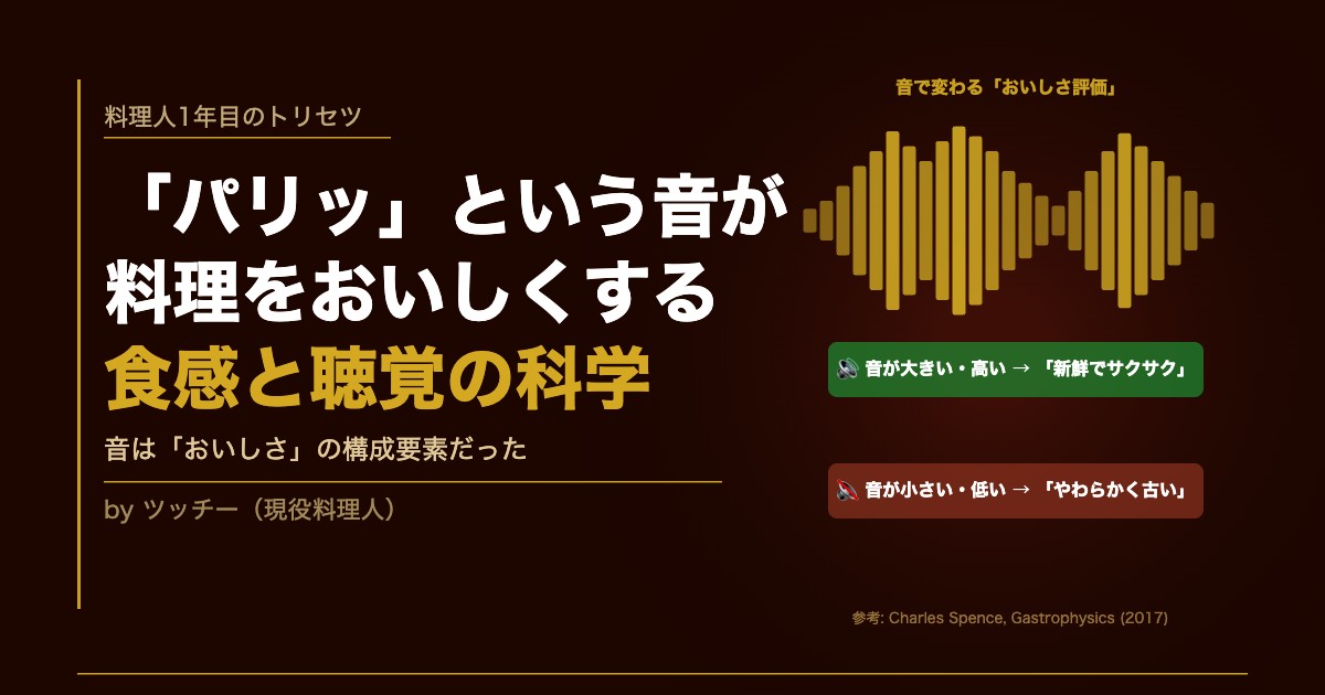 「パリッ」という音は、料理の品質証明書のようなもの。音が出るということは「水分が適切に蒸発して、サクサクの構造ができあがっている」証拠です。音を聞いた脳は「これは新鮮でおいしい食べ物だ」と即座に判断します。だから揚げたての音を聞くだけでよだれが出るんです。