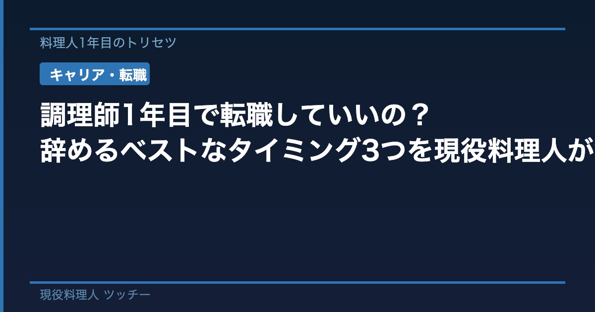 結論から言います。調理師1年目での転職は、甘えではありません。ただし、タイミングを間違えると後悔します。